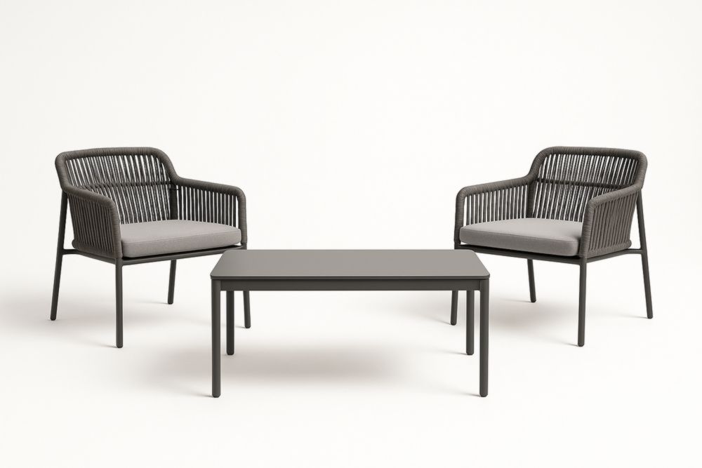 Set da Giardino con 2 Sedie e Tavolo in Alluminio e Tessuto